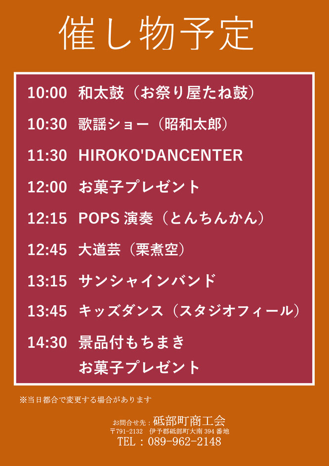 ●和太鼓、歌謡ショー、キッズダンス、景品つき餅まき
